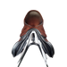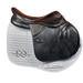 The Overton Jump Saddle is ideal for riders seeking balance, comfort, and versatility in the ring. With its forward-cut flaps and close-contact seat, it offers exceptional stability and support during jumping, while the staggered soft leather knee roll promotes a secure leg position without constraint. The cushioned section at the skirt prevents creasing, ensuring both the rider's comfort and the saddle's longevity. Made with genuine leather on the seat, flaps, skirt, and knee rolls, the Overton combines durability with sophistication, complemented by a low-maintenance synthetic underside. Equipped with a quick and convenient Allen key adjustment system and interchangeable gullet bar, it enables riders to achieve the perfect fit effortlessly. Featuring stylish contrast stitching and piping, as well as a customizable cantle plaque, the Overton Jump Saddle blends performance, functionality, and contemporary design.